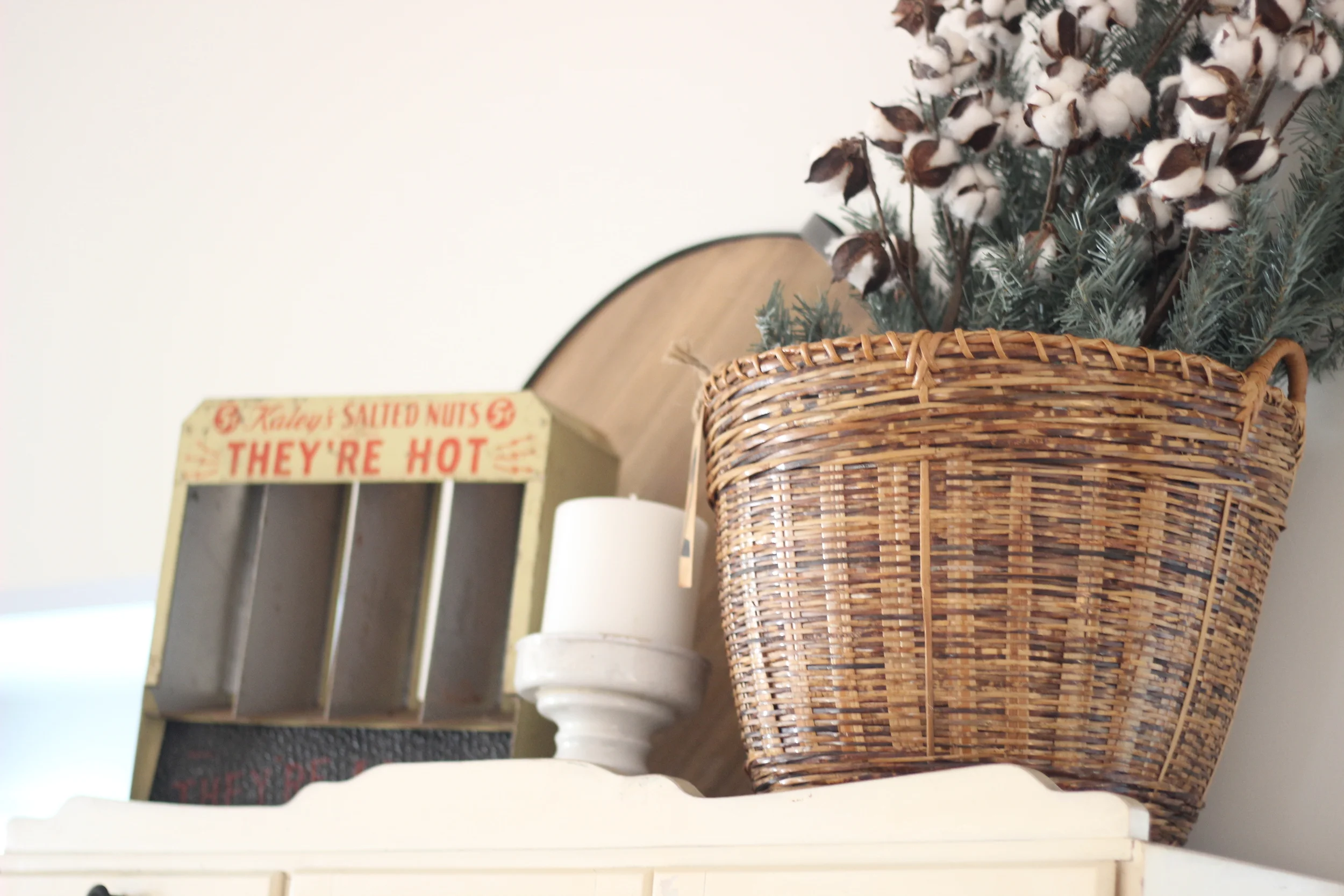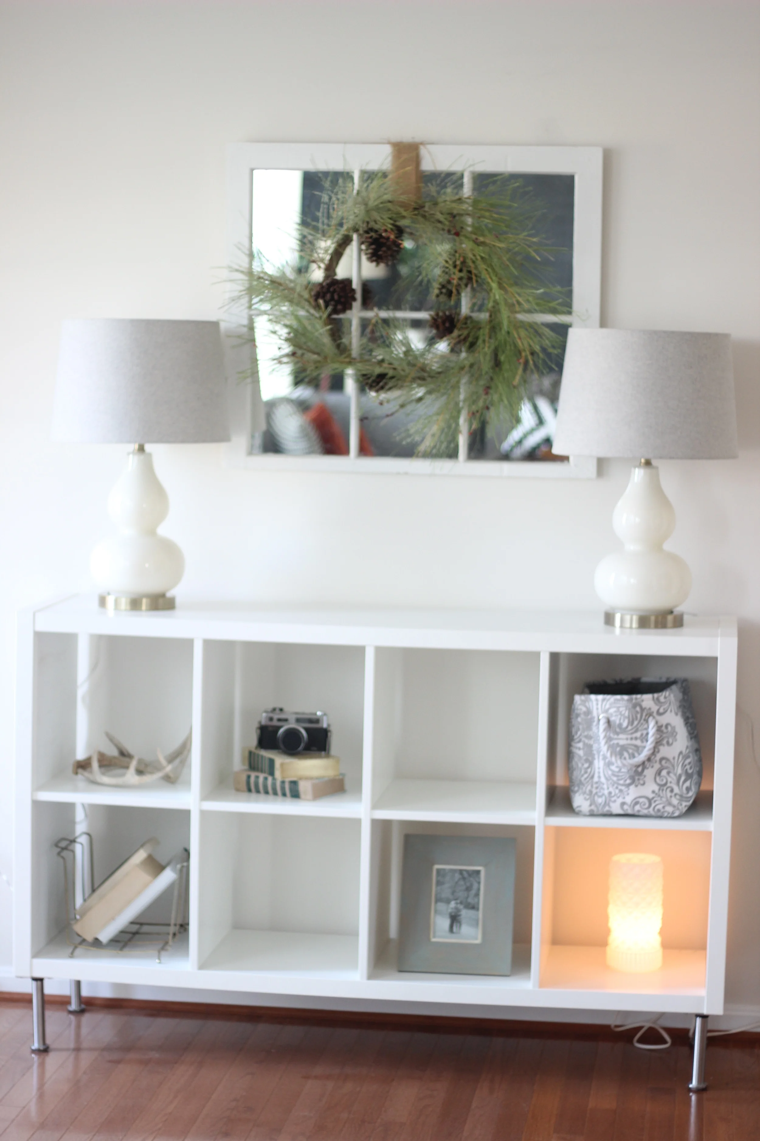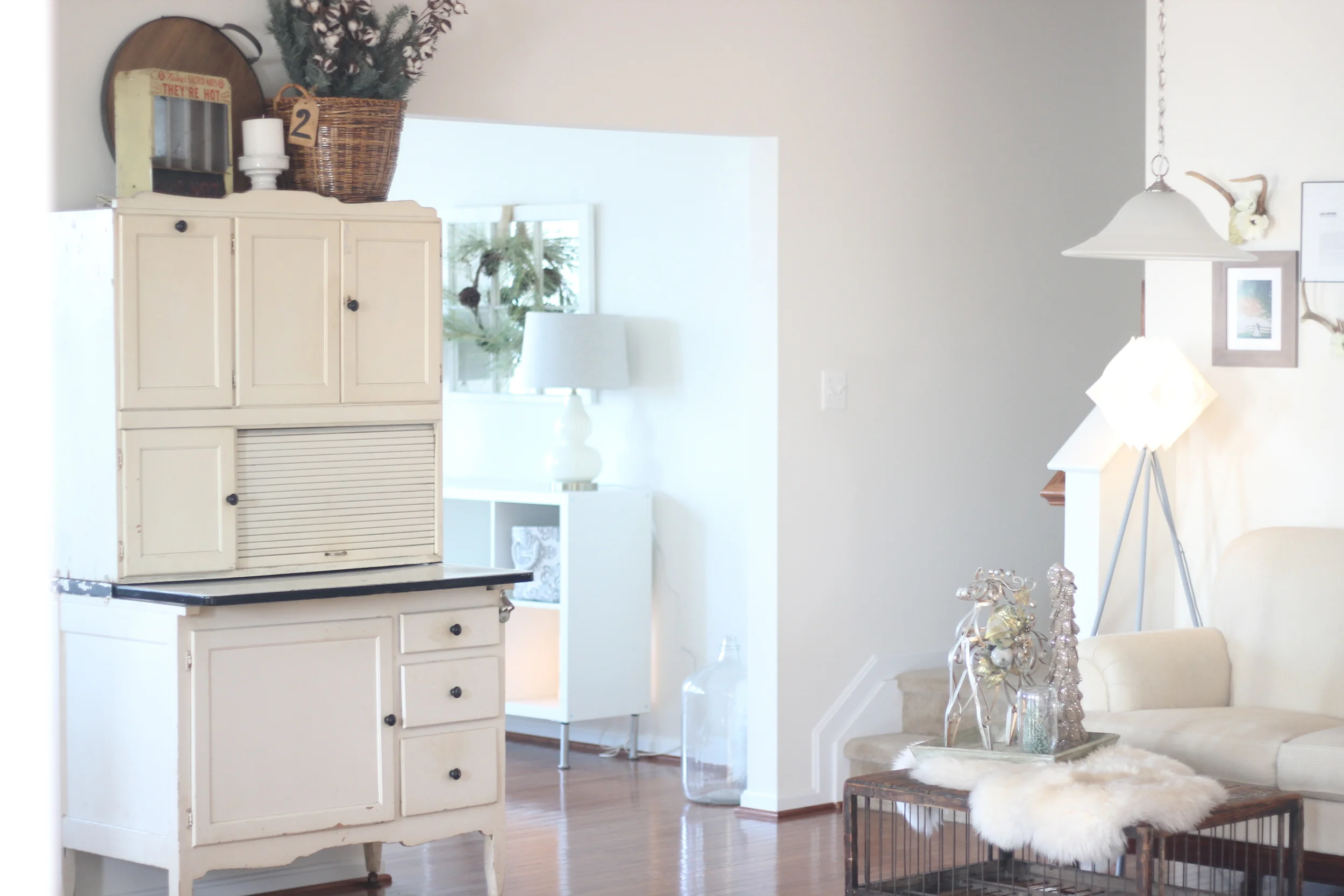 AFTER--Custom Birchwood Blog art in the form of a verse went over the credenza. Along with some of Marmie's favorite accessories.