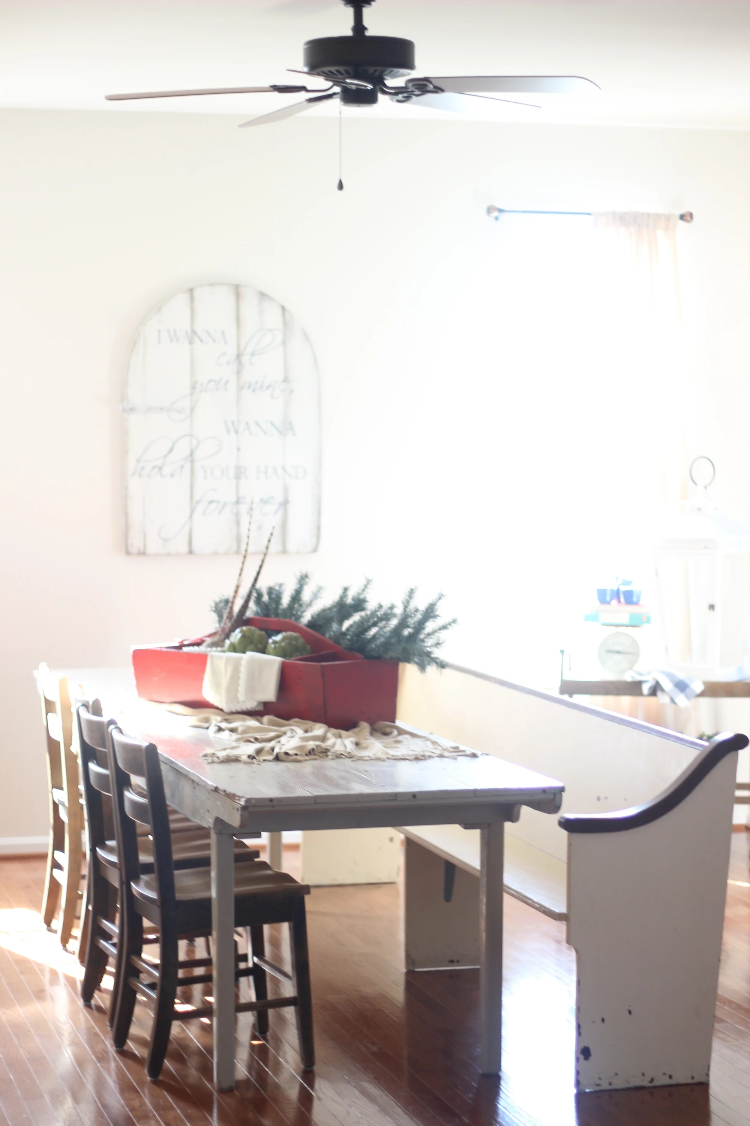 AFTER--The dining room got curtains! They make everything feel so much more dreamy!
