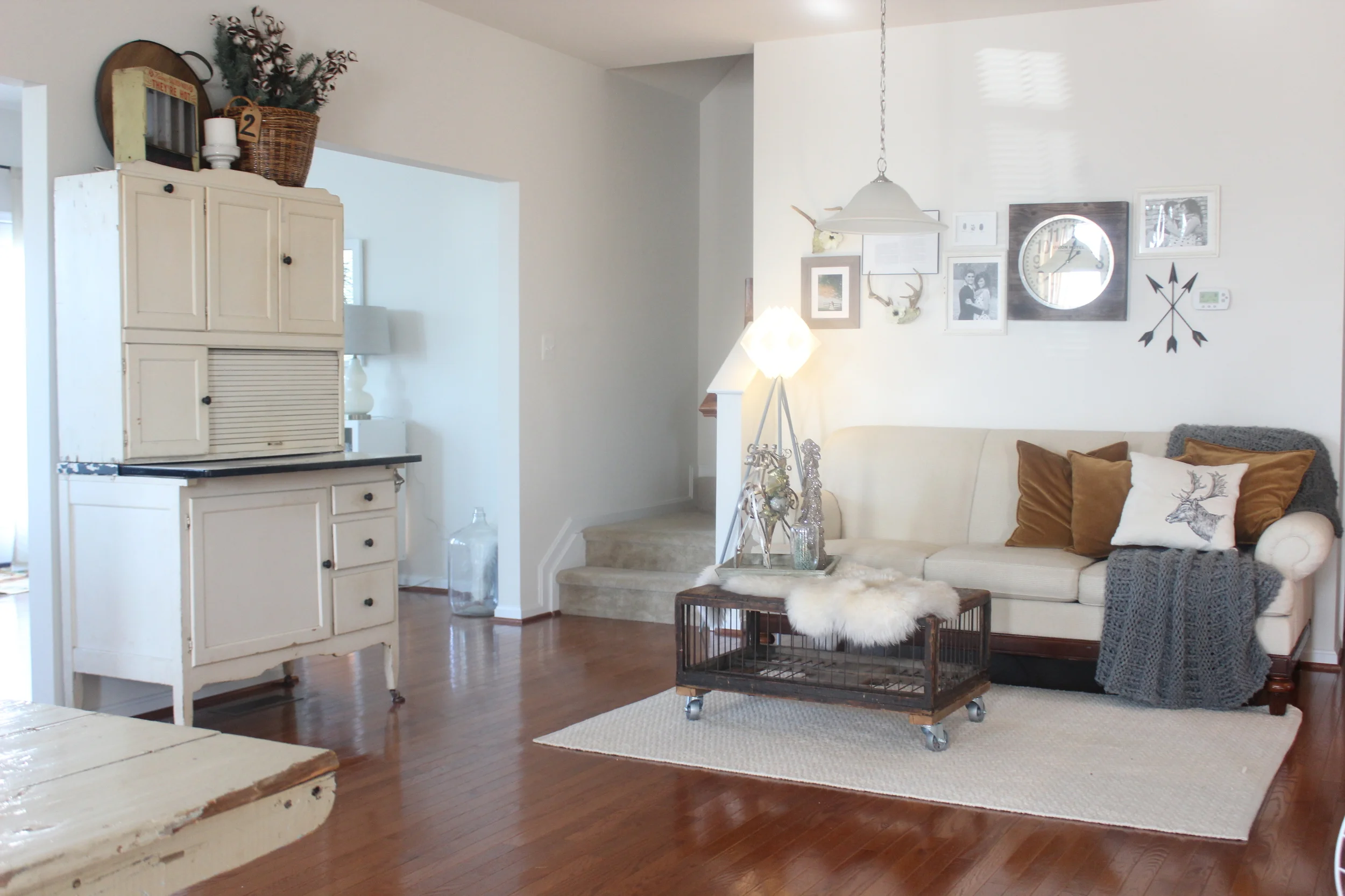 AFTER--The old chest that used to be in the family room came to the living area. It was smaller and works better in front of the smaller sectional.