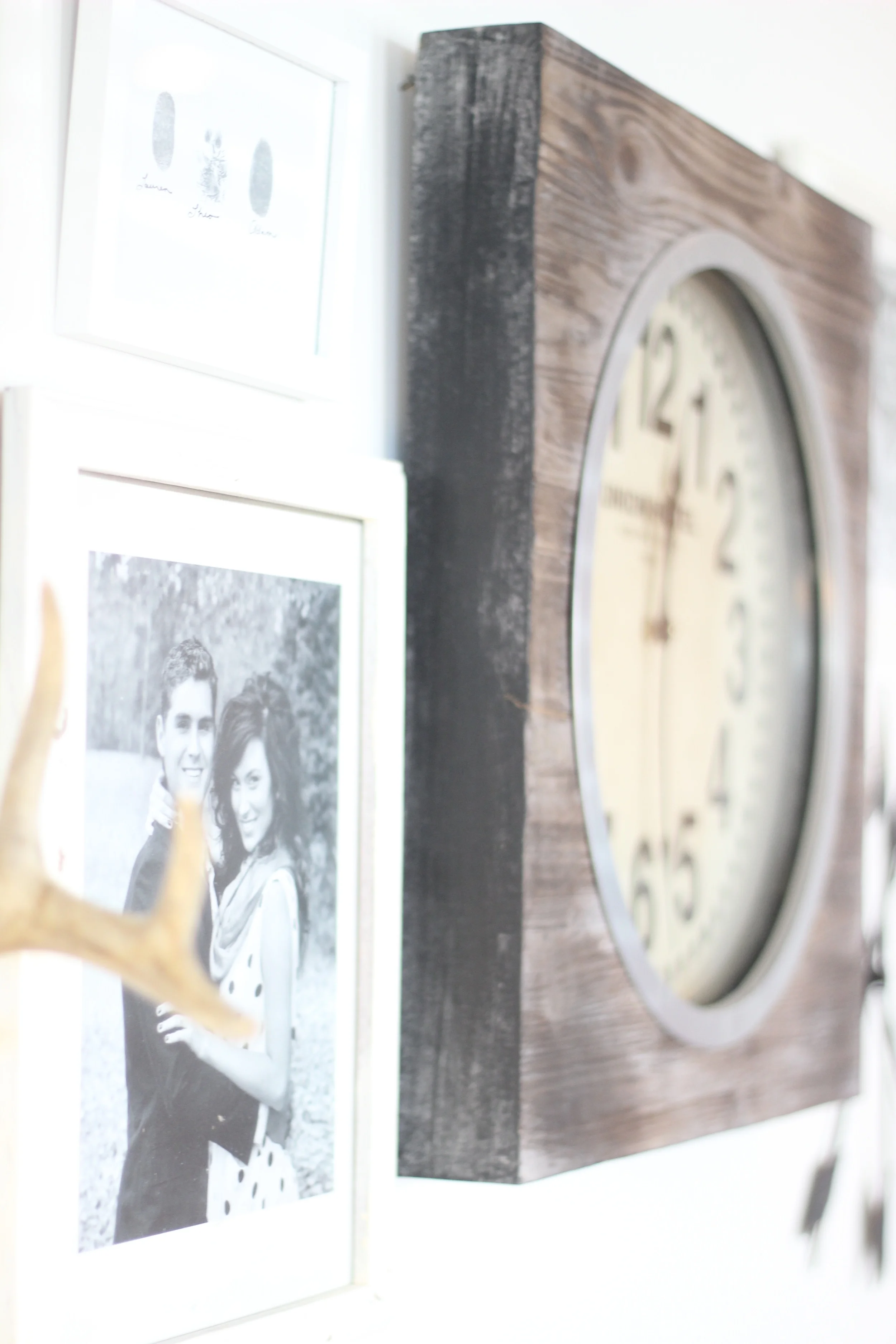 AFTER--The keeping area deserved a fun sofa table and accessories. A new custom photo wall shows off the family initial and enlarged photos of the grand babies.